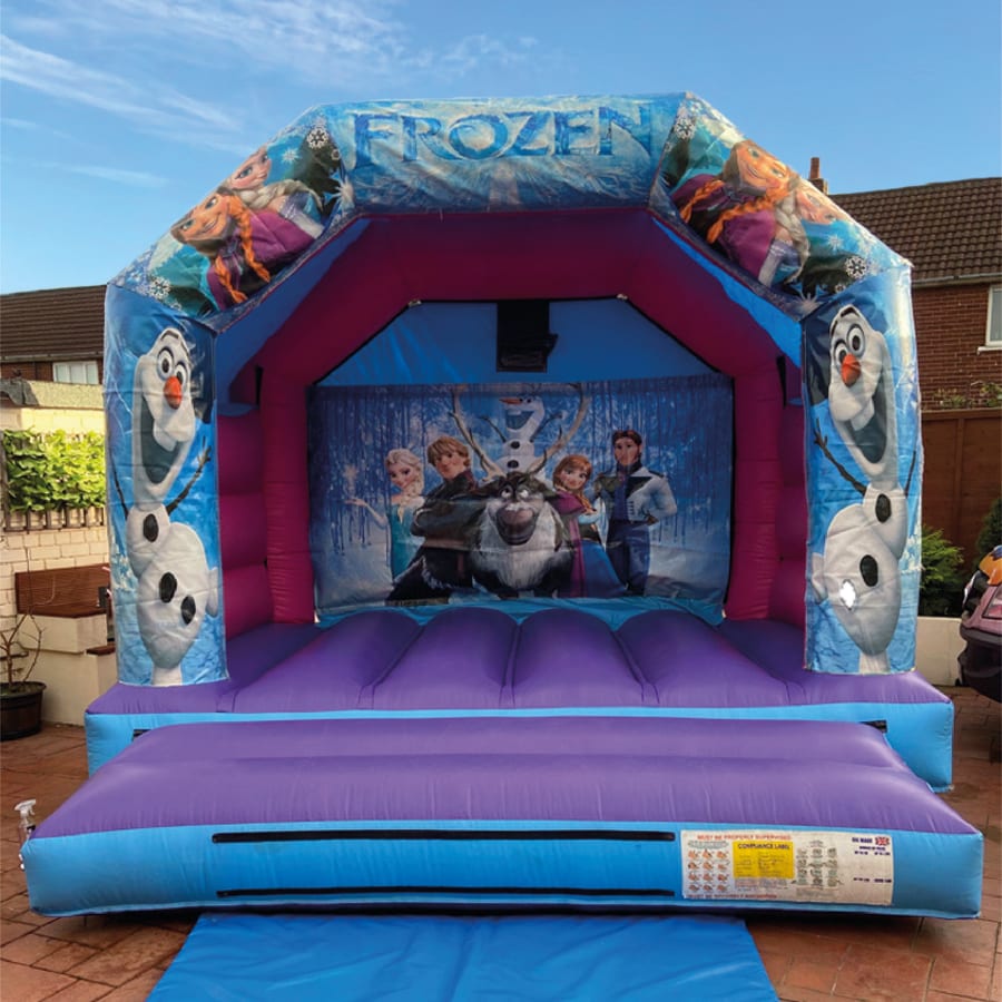12ft x 12ft Frozen themed Bouncy castle hire in Liverpool Widnes, Warrington, Runcorn and St. Helens.