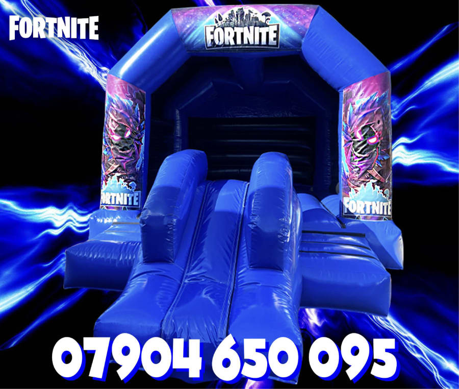 12ft x 17ft Fortnite Slide Bouncy castle hire in Liverpool Widnes, Warrington, Runcorn and St. Helens.