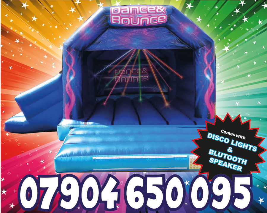 17ft x 15ft Disco Side Slide Bouncy castle hire in Liverpool, Widnes, Warrington, Runcorn and St. Helens.