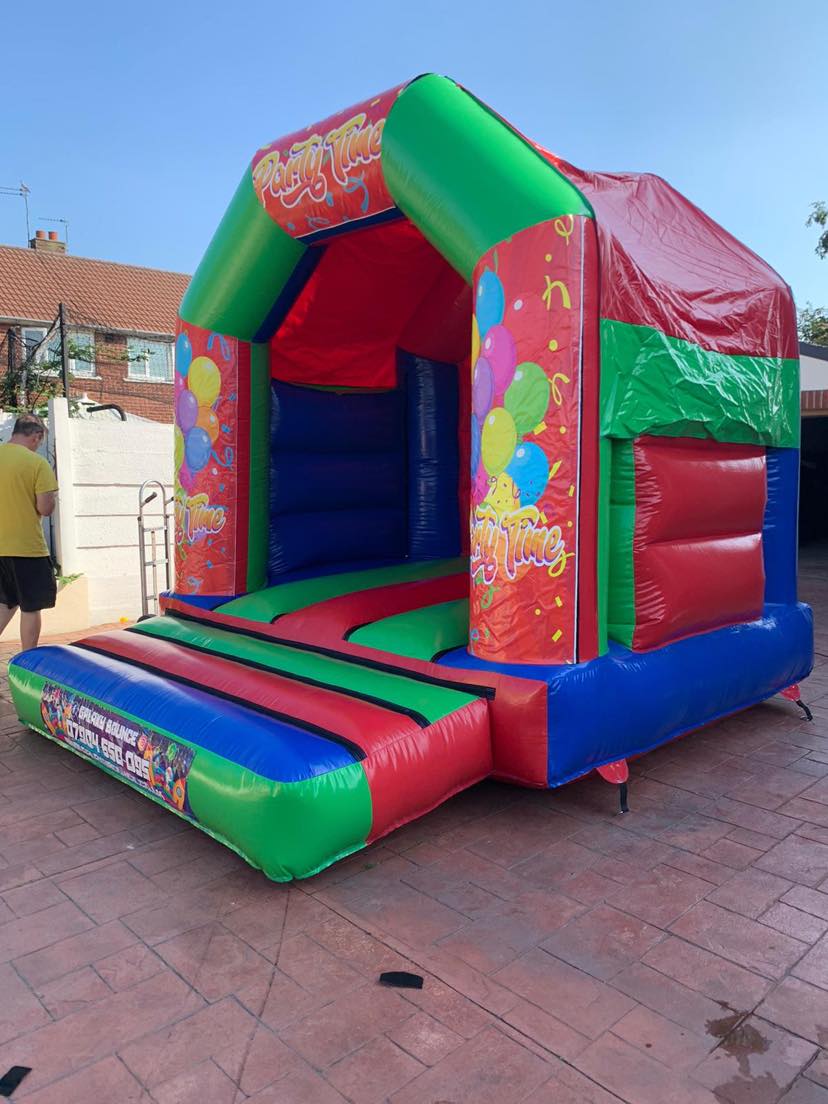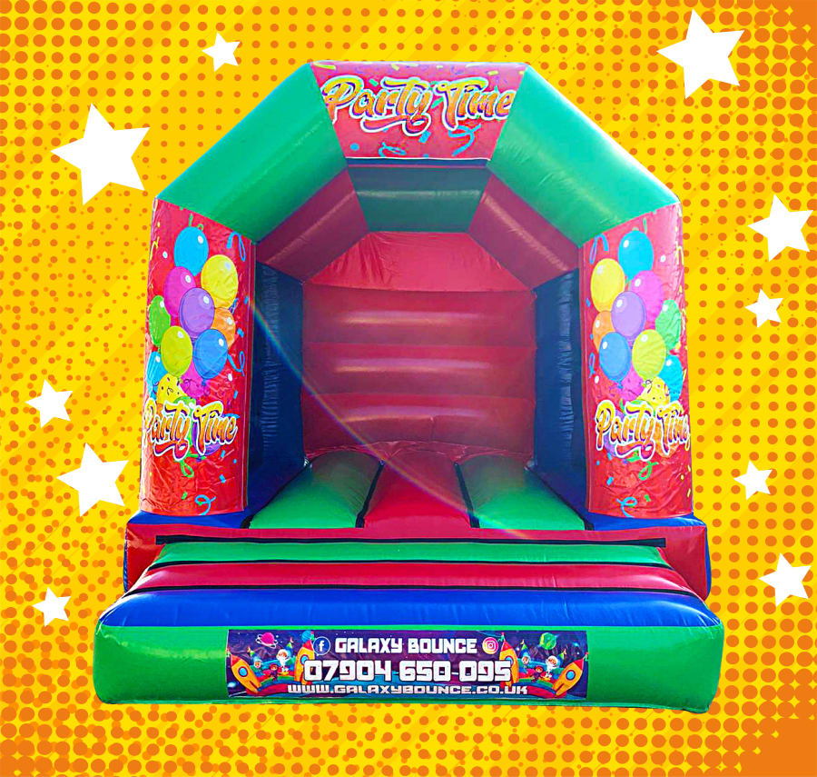 Party Time Bouncy castle 12x10ft hire in Liverpool Widnes, Warrington, Runcorn and St. Helens.