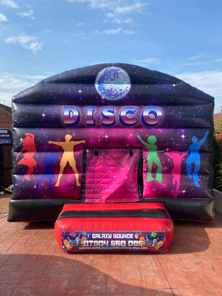 Our Disco Bouncy Castle is definitely the perfect show stopper for any party or occasion. With its bright disco lights and bluetooth speaker system, this castle is one of our customers favourites when it comes to entertaining guests. Disco Lights are attached to the inside of the castle giving the party atmosphere to the inside of the castle. The speaker is extremely simple to use. You simply connect your phone or computer via bluetooth and away you go! Our team will show you step by step during set up :)