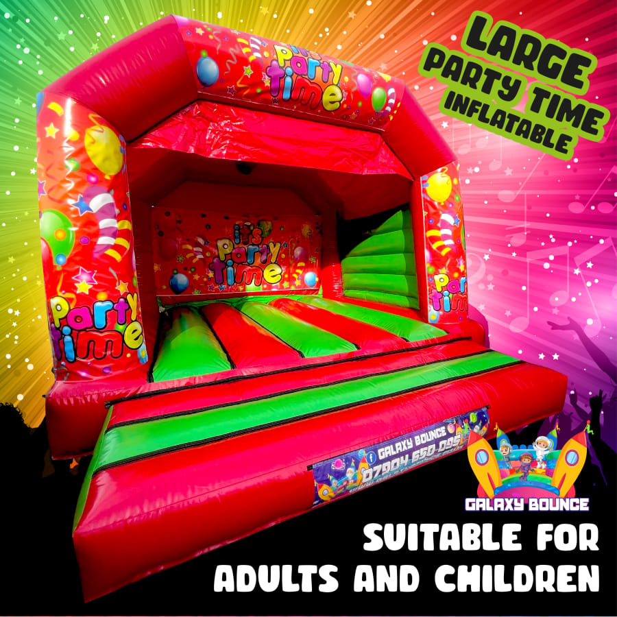 Introducing the Party Time Large 15x15ft Bouncy Castle for Hire in Widnes, Runcorn, Warrington, St Helens, Liverpool, and Frodsham