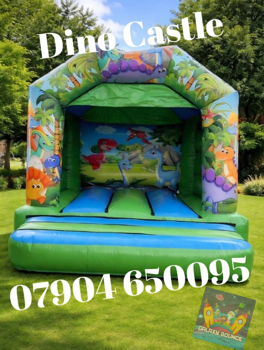 10ft x 12ft Dino Bouncy castle hire in Widnes, Runcorn Warrington, Liverpool and St. Helens.